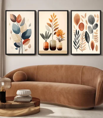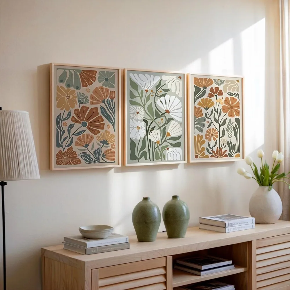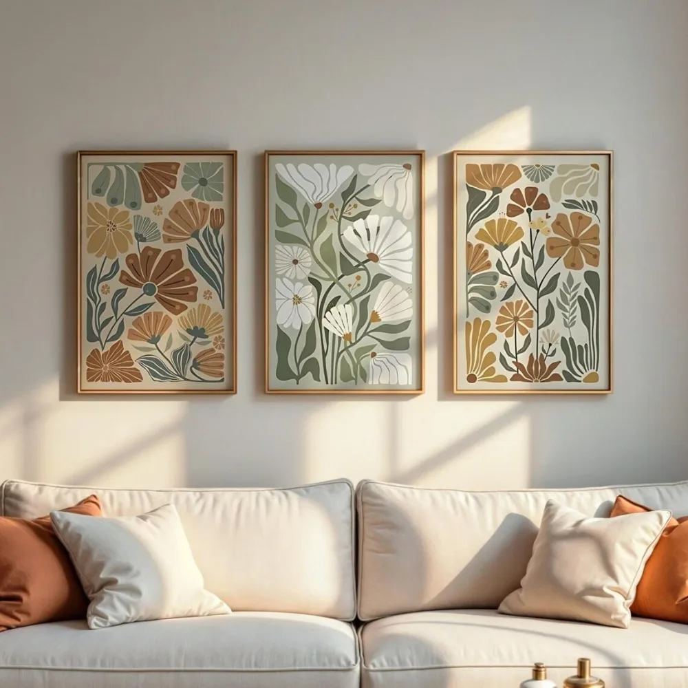 3pcs Frameless Set Bohemian Style Matisse Style Floral Art Printing,Abstract Plant Canvas Wall Decor,Living Room Home Decoration