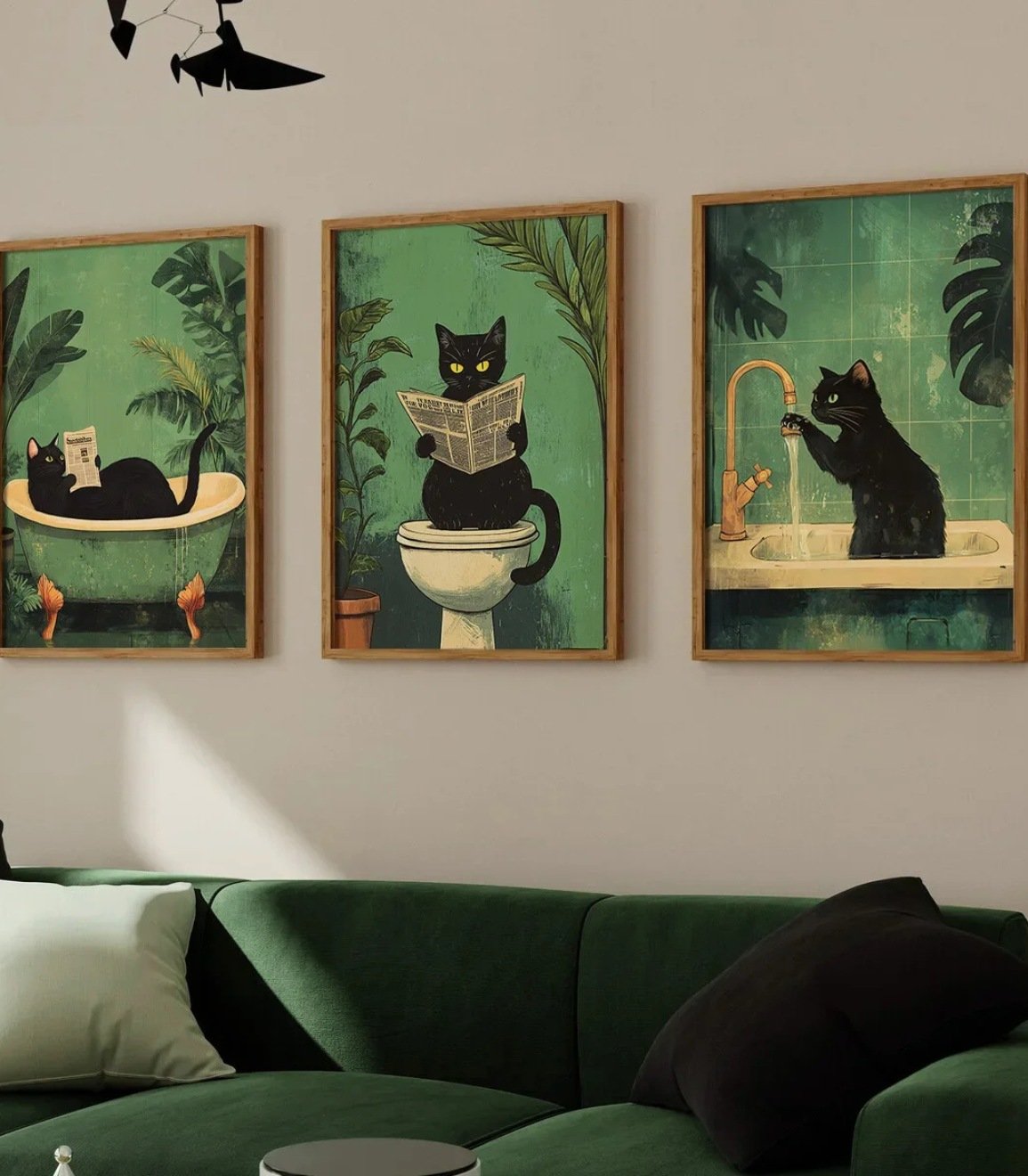 Funny Bathroom Black Cat Canvas Poster Retro Animal Toilet Wall Art Prints for Modern Living Room Bedroom Bathroom Home Decor