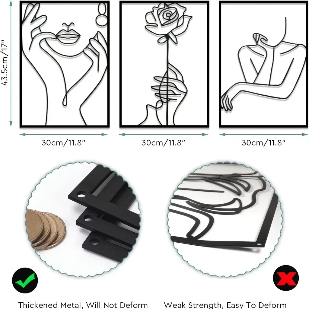 1PC Abstract Wall Art, Metal Line Art Wall Decor, Simple Silhouette Female Body Abstract Line Home Hanging Decor Wall Sculptures