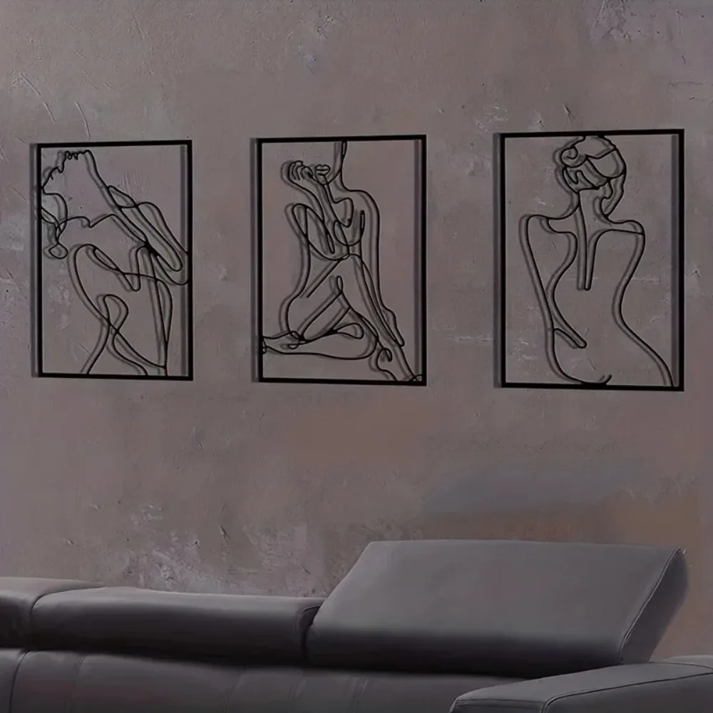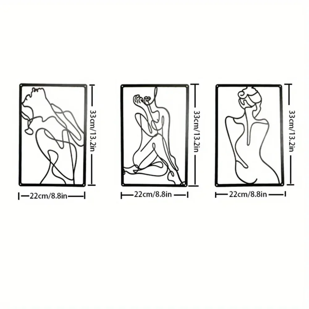 3Pcs Minimalist Abstract Woman Metal Wall Art Sculpture Line Drawing Decor