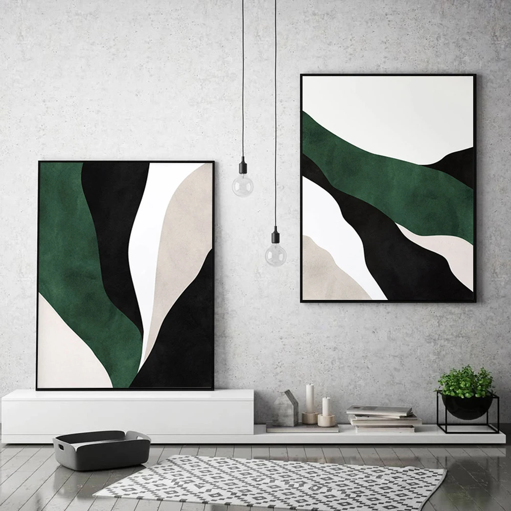 Abstract Emerald Green Black Wave Line Poster Set Of 2 Minimalist Aesthetics Wall Art Gallery Painting Home Decor Canvas Print