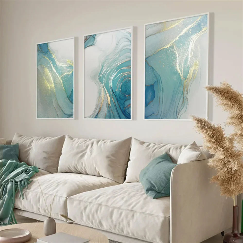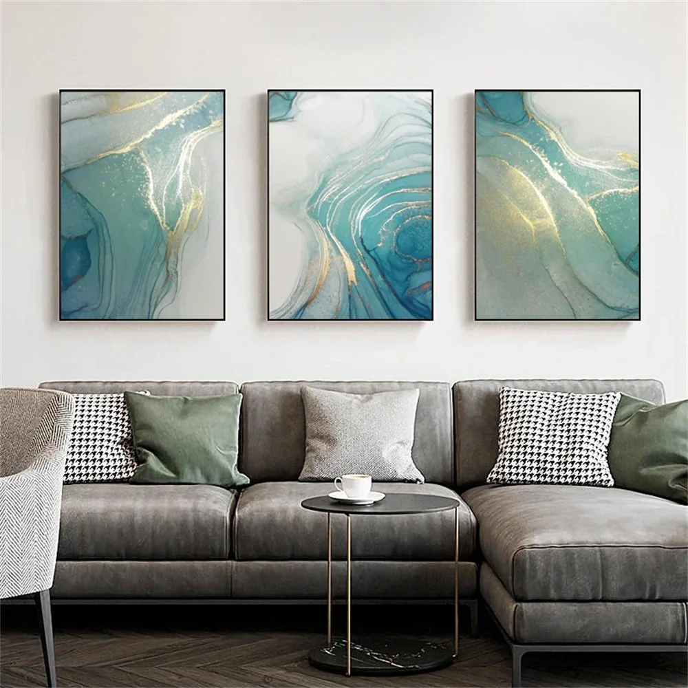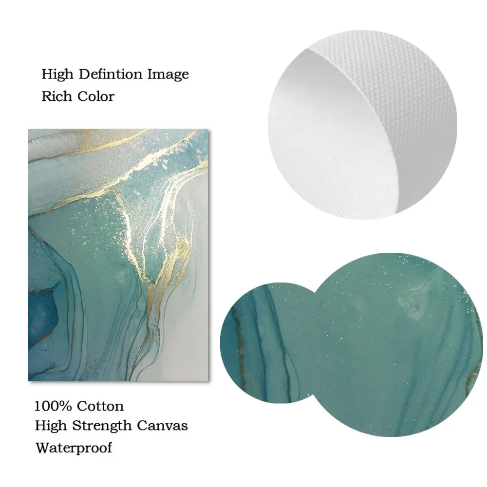 Abstract Wall Art Canvas Painting Prints Nordic Luxe Gilt Picture Turquoise Gold Foil Marble Texture Poster Living Room Decor