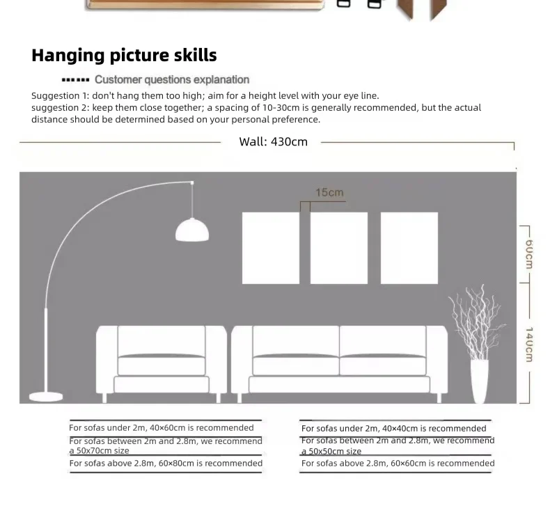 3. For sofas above 2.8m, 60×80cm/60×60cm is recommended
