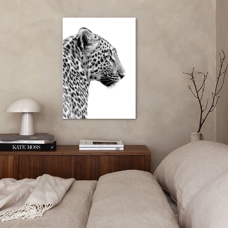 Black and White Painting Leopard Profile Canvas Art Framed – Minimalist Wildlife Wall Poster for Modern Living Room Nordic Decor