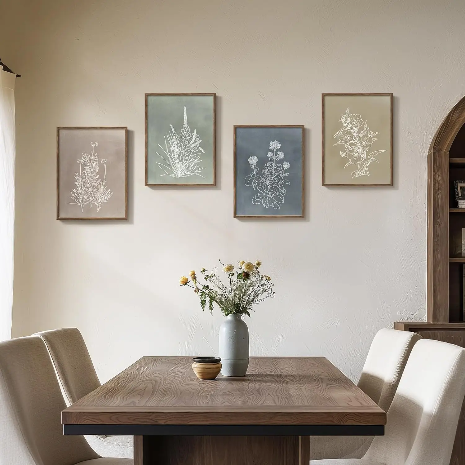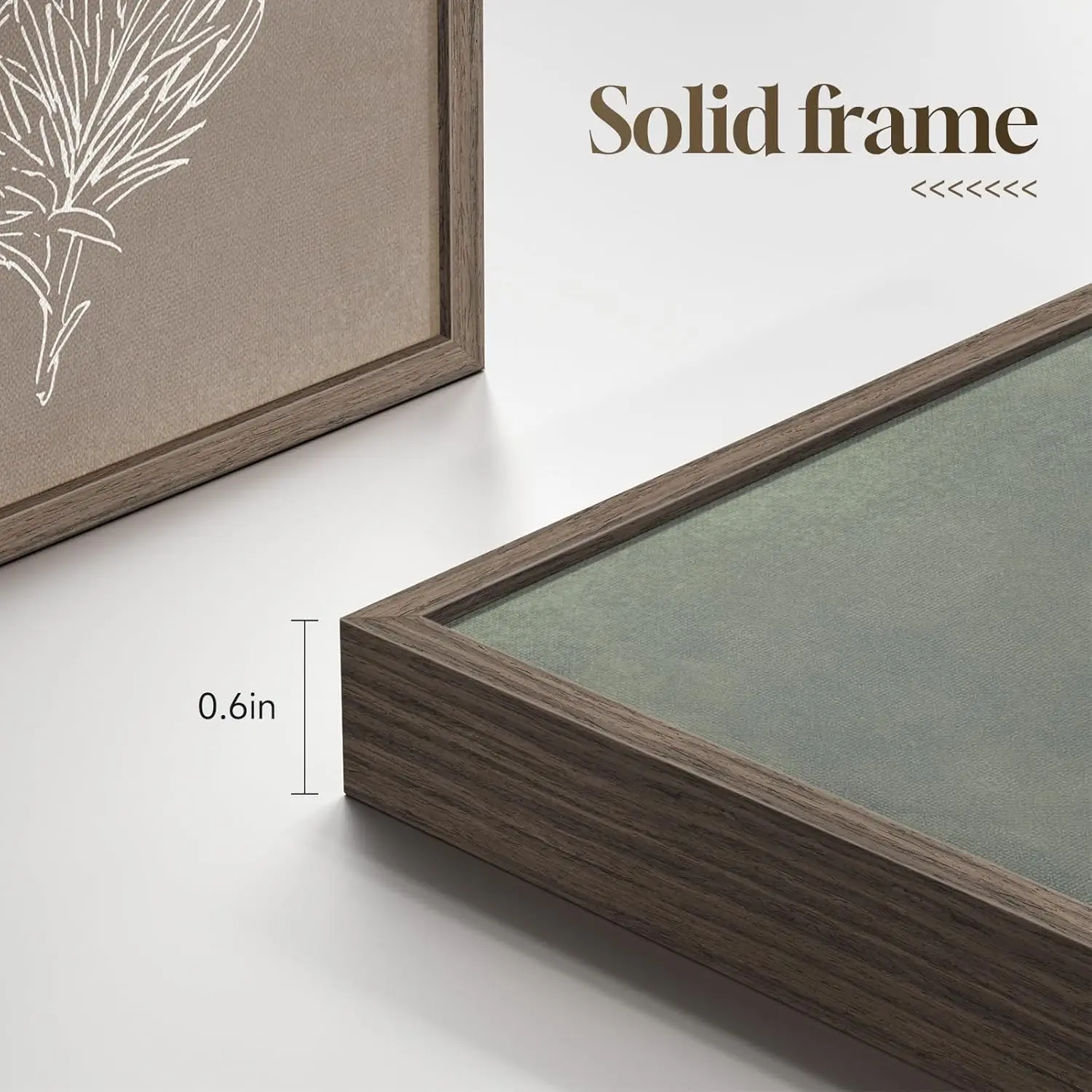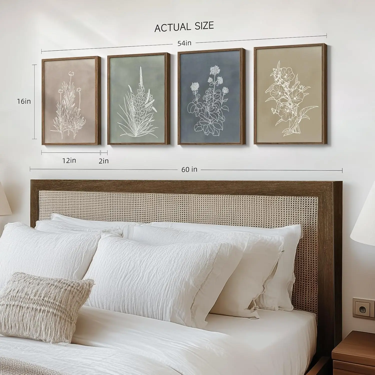 Framed Boho Botanical Wall Art, 4-Piece Rustic Floral Canvas Prints for Living Room, Bedroom, Office Decor