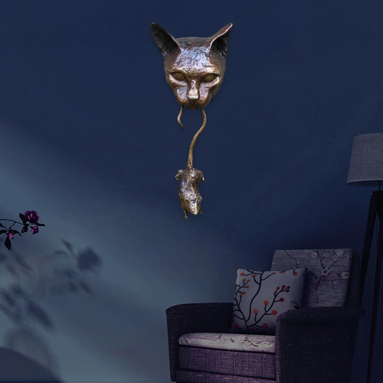Halloween Cat and Mouse Statue Resin Wall Sculpture Pendant Knocker Garden Courtyard Decoration for Door Pile Protect Plants