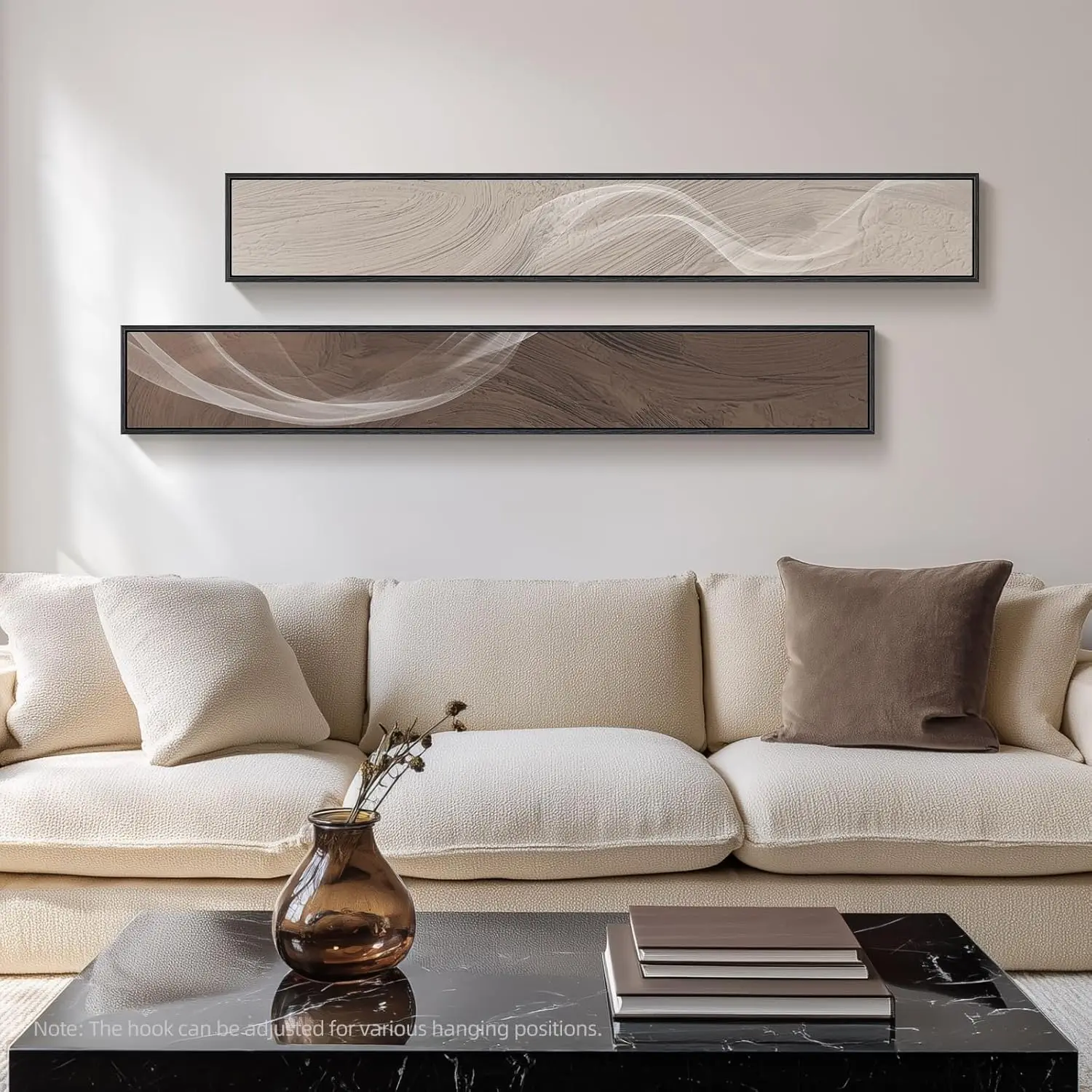 Large Framed Vertical Abstract Wall Art Set of 2, Beige Brown Modern Canvas Prints for Living Room Bedroom Decor