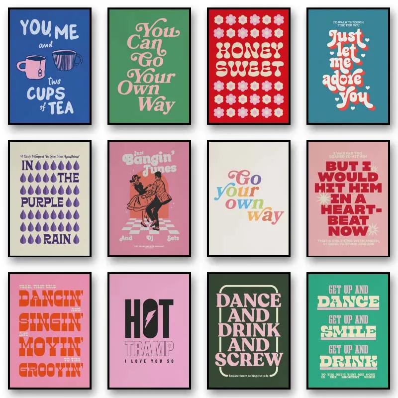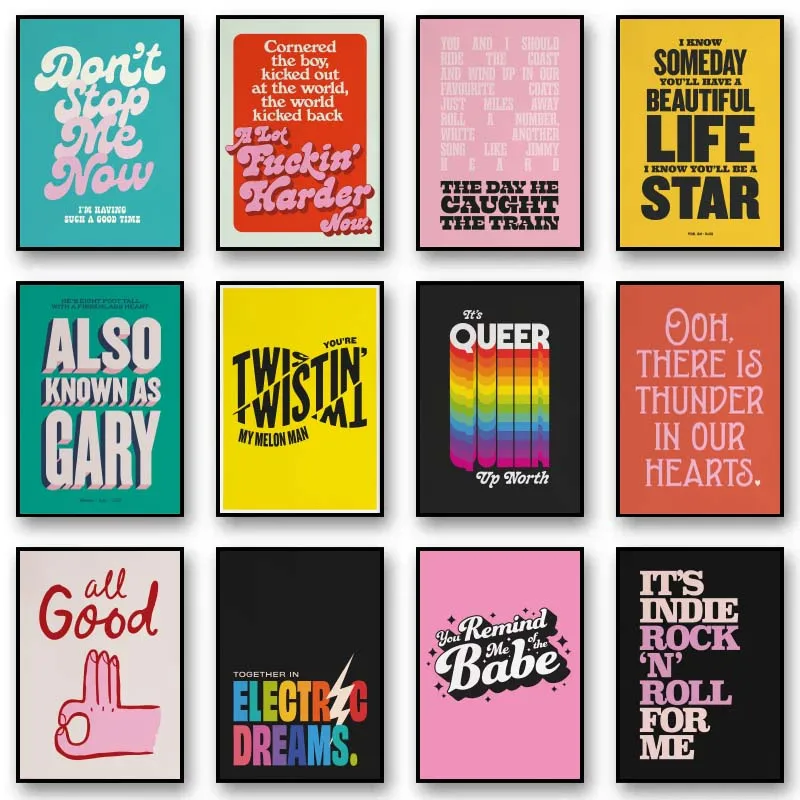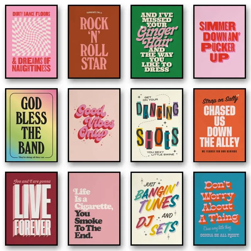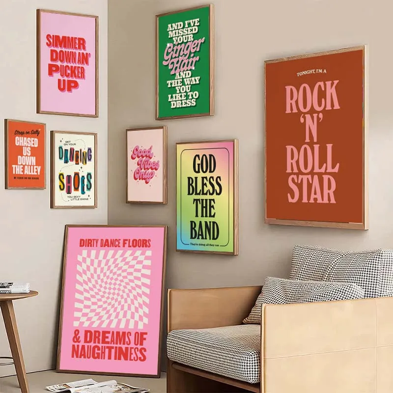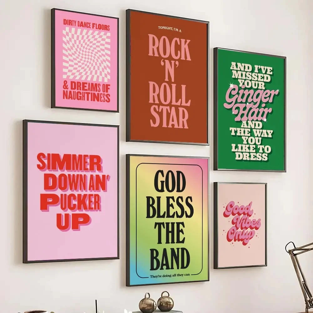 Minimalism Music Typography Art Posters Pink Colors Lyrics Quotes Wall Art Canvas Painting Living Room Home Decor