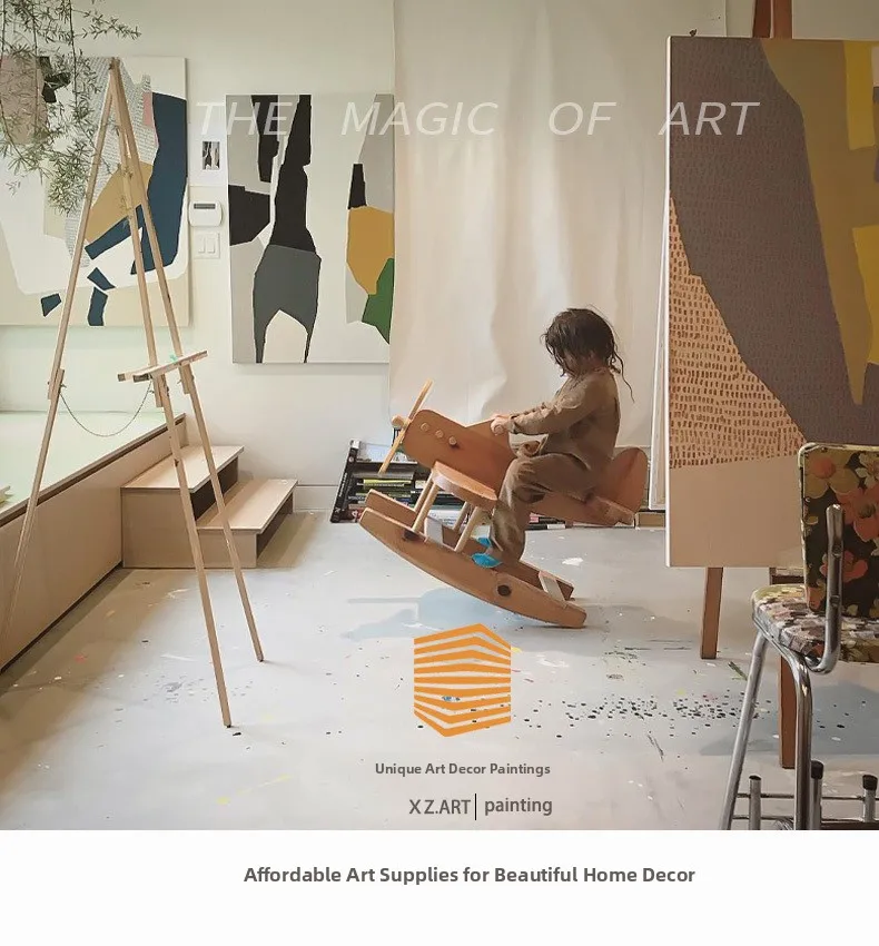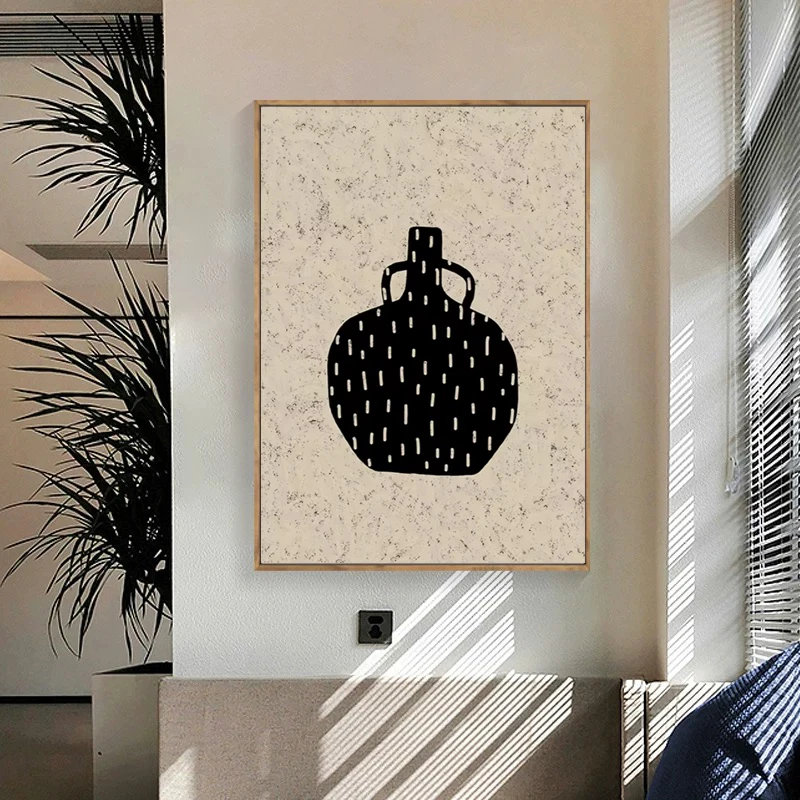 The painting features a minimalist Nordic style, perfect for modern living spaces. Its abstract pattern adds a touch of sophistication to any room.