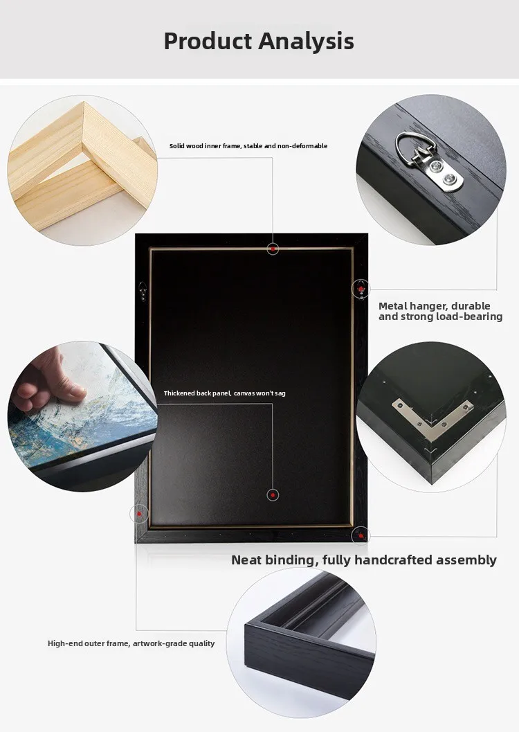This painting comes with a frame and is ready to hang, making it easy to install without the need for drilling holes.
