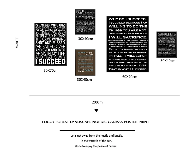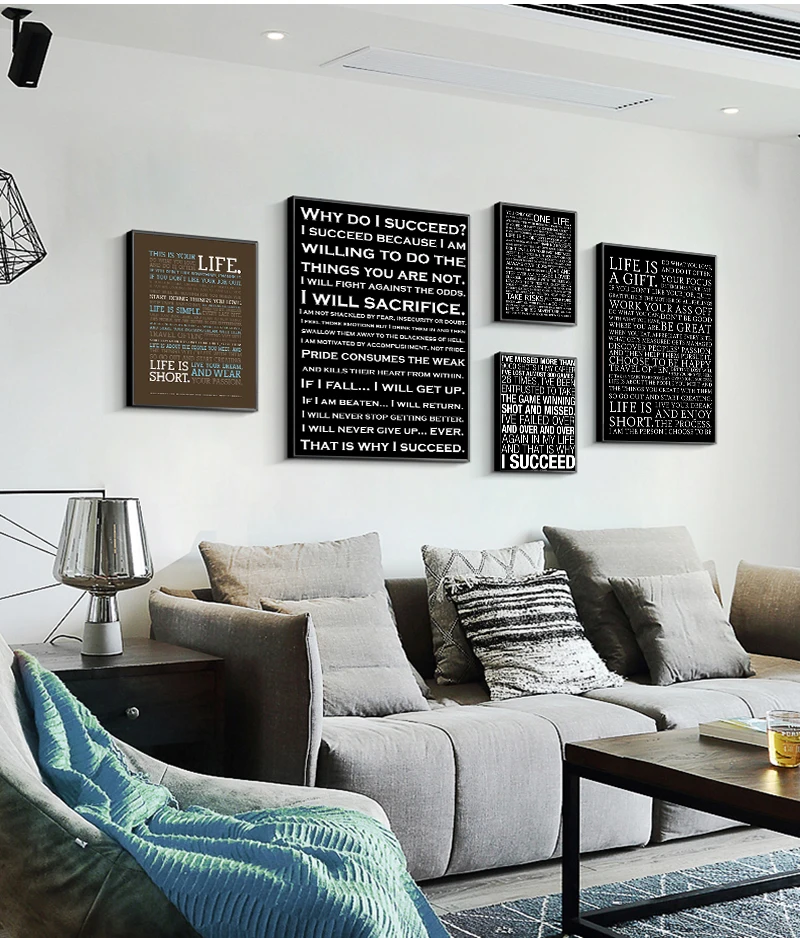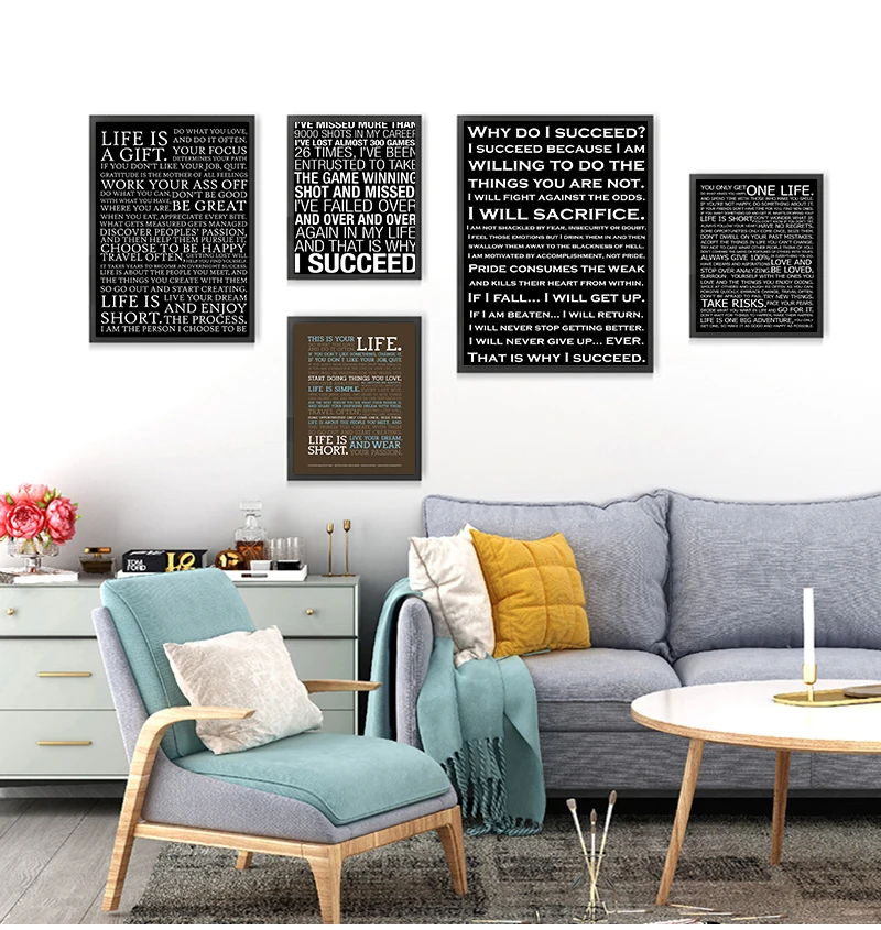 Motivational Life Quotes Canvas Wall Art Poster Black White Print Painting Decorative Picture Modern Home Living Room Decor