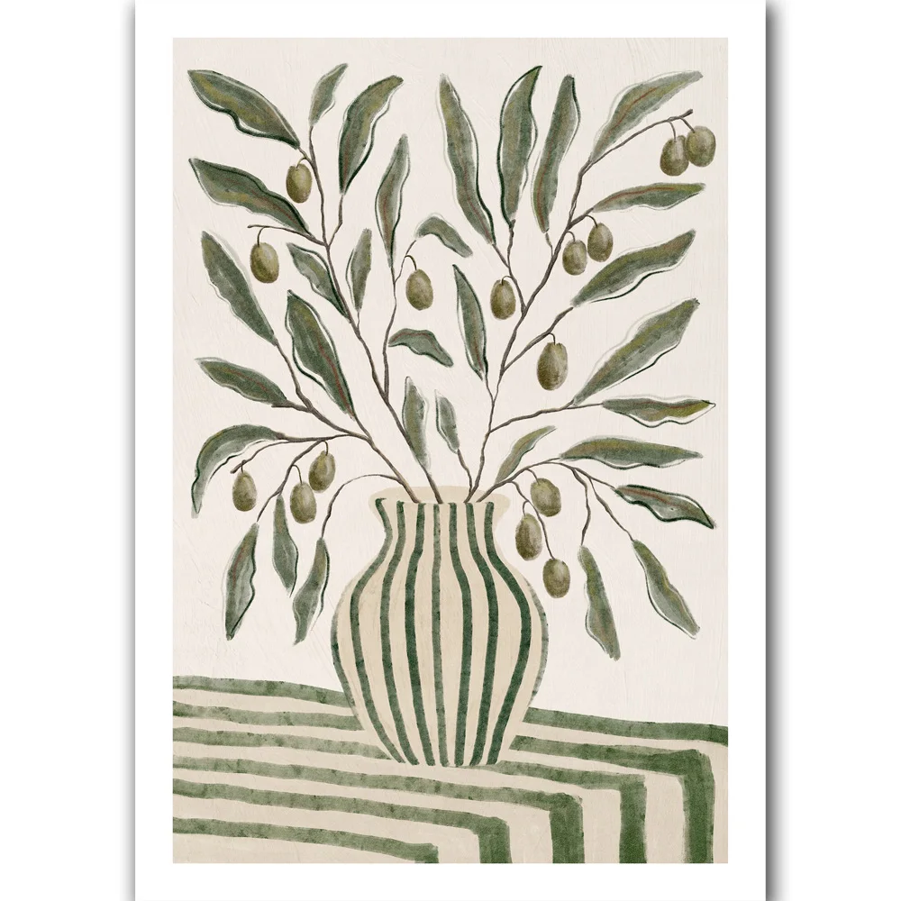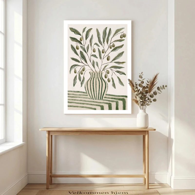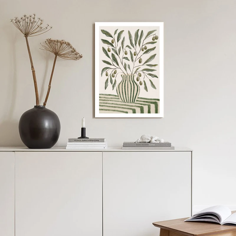 Nordic Olive Branch Canvas Print Sage Green Botanical Wall Art Minimalist Plant Poster for Living Room Kitchen Home Decor