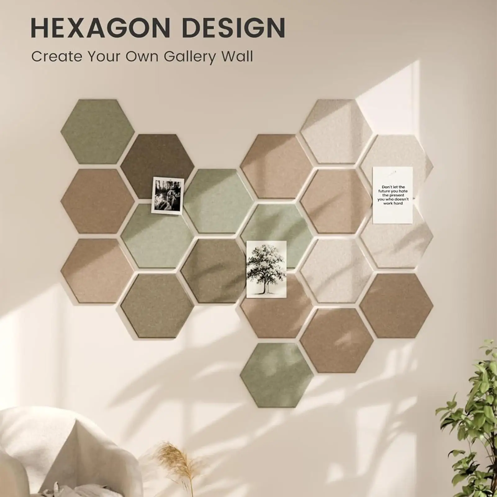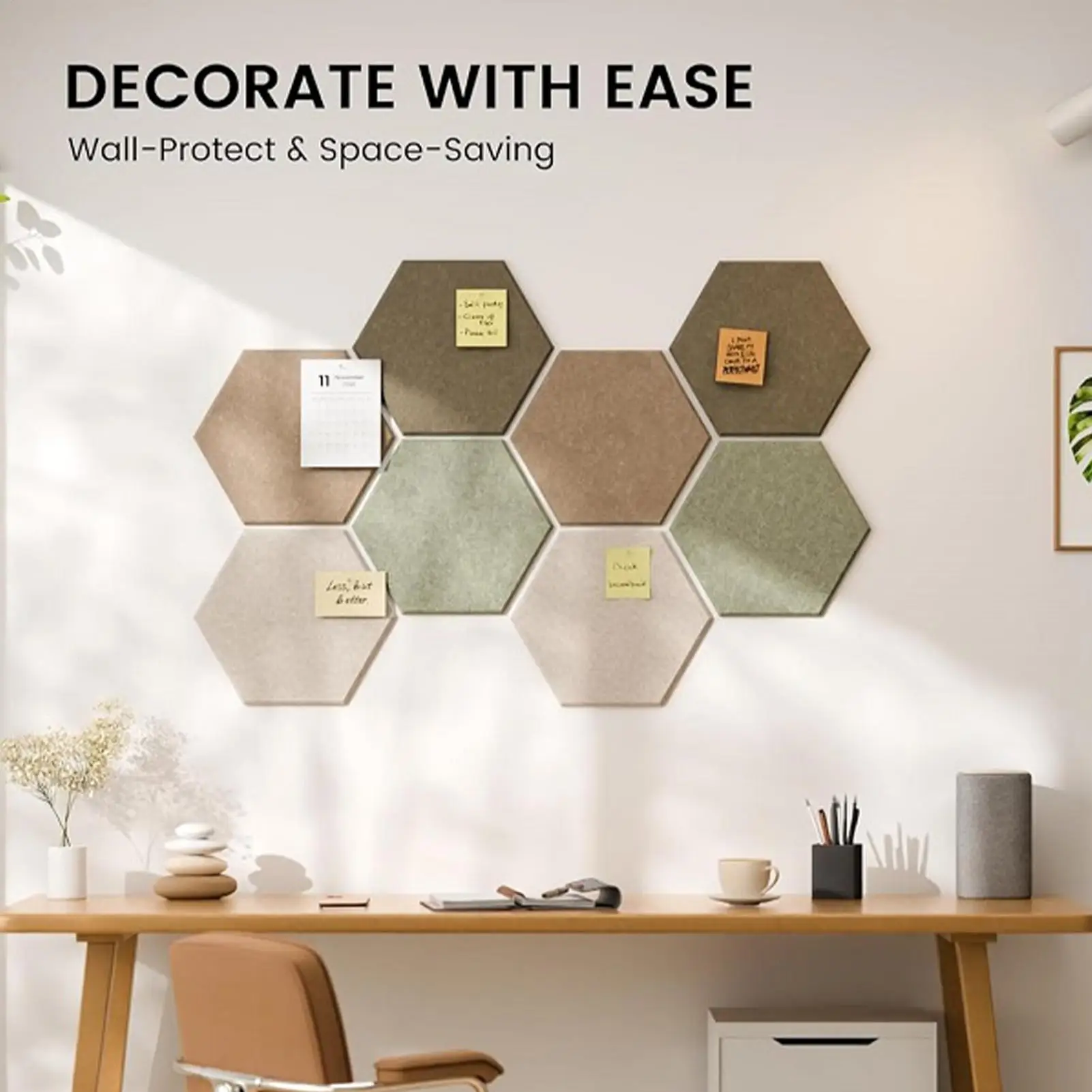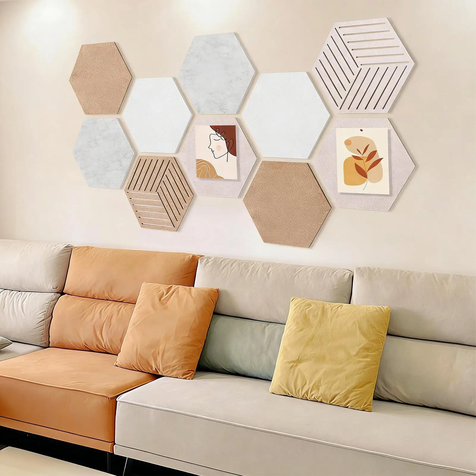 Enhance your space with this Decorative Pin Board Wall Mounted, designed in a stylish hexagon shape to elevate aesthetic appeal. Perfect for displaying photos, notices, and DIY crafts, it serves as both functional and decorative home decor. The board provides noise reduction properties, creating a quieter environment in any room. Equipped with nails adhesive, installation is effortless while ensuring stability. Ideal for homes, bedrooms, living rooms, nurseries, offices, schools, classrooms, or hotels, it transforms walls into organized displays. Use this versatile panel to showcase memories or important reminders seamlessly.