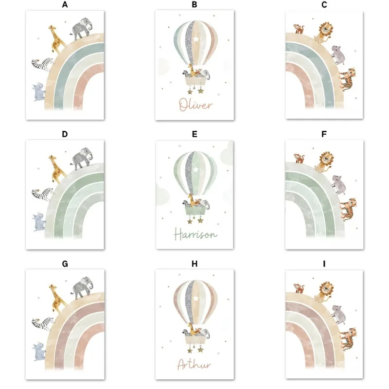 Rainbow Lion Giraffe Zebra Balloon Custom Name Nursery Wall Art Canvas Painting Posters And Prints Pictures Baby Kids Room Decor