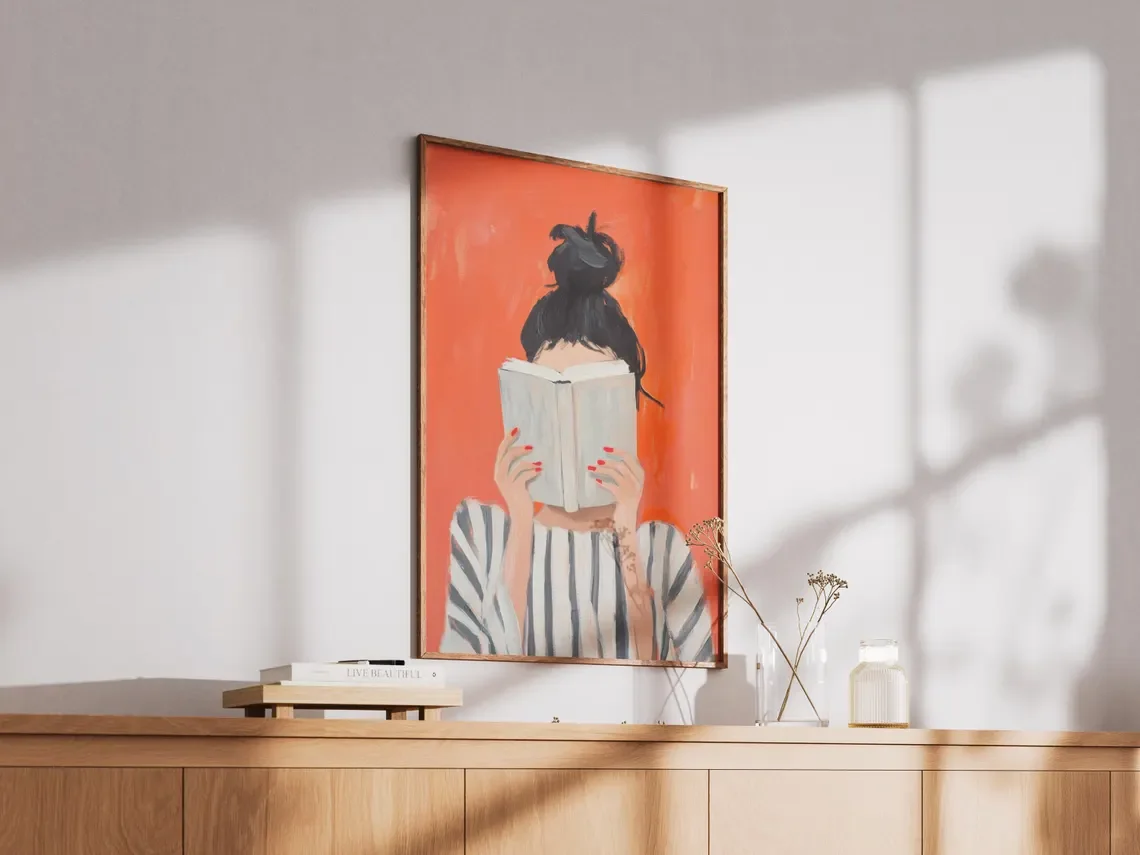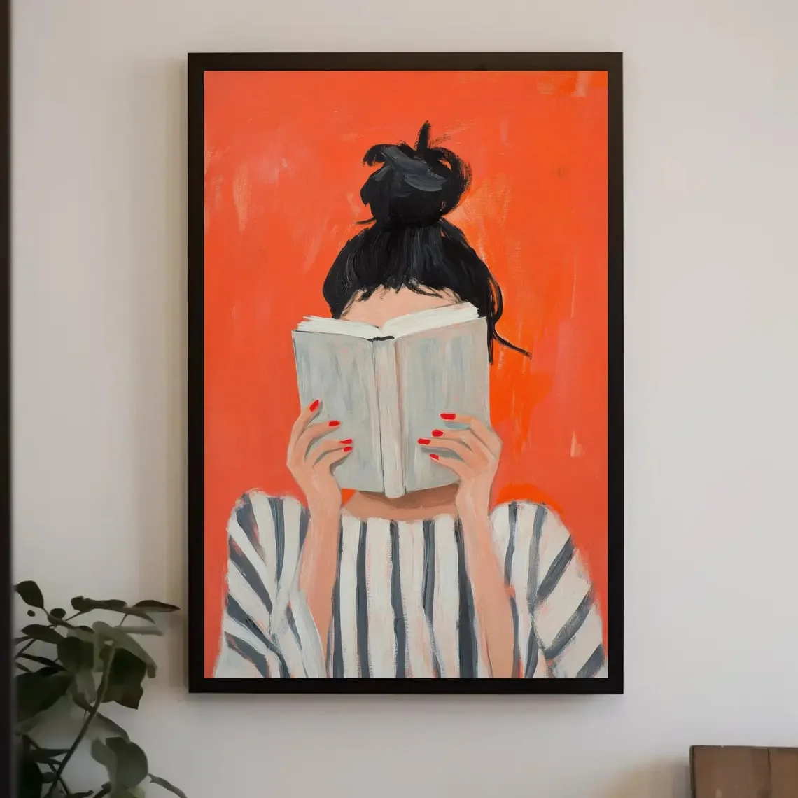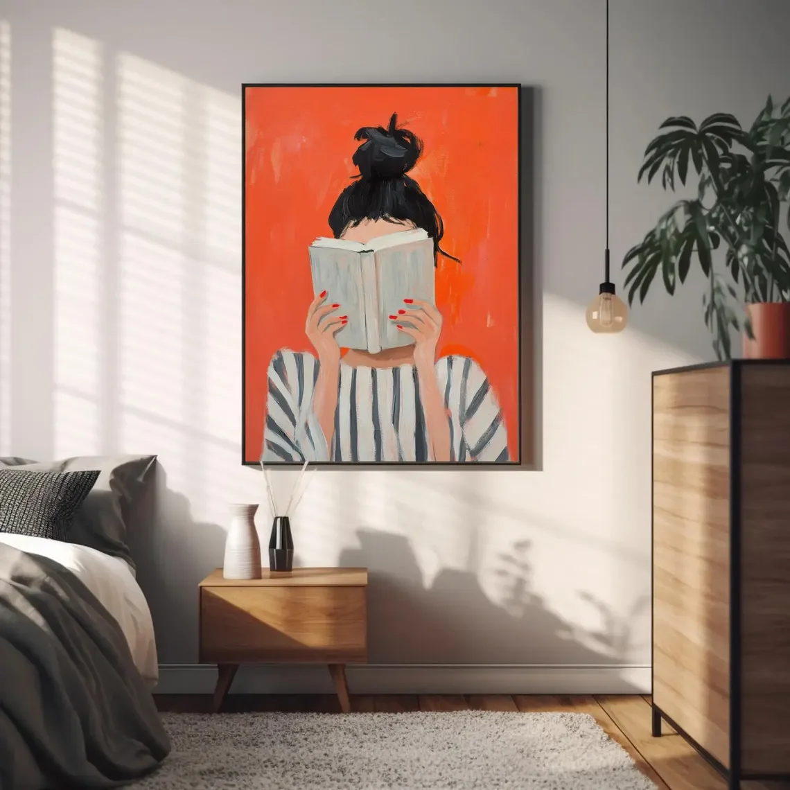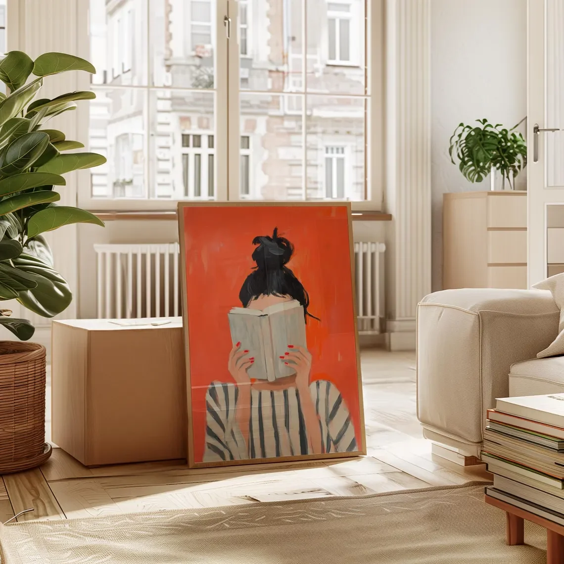 reading woman art print | book poster | feminine cozy wall art | bold orange art print | abstract contemporary portrait art | au