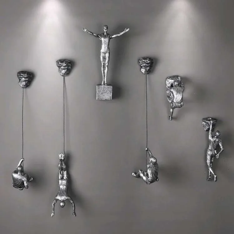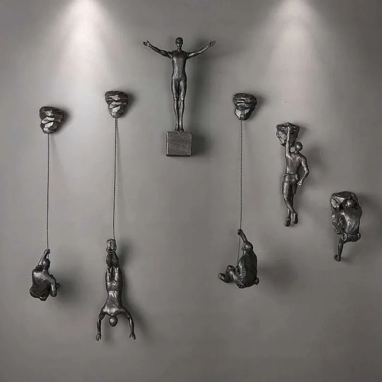 Retro Hanging Figure Wall Decorative Sculpture Resin Athlete Rock Figurines Nordic Home Living Room TV Background Wall Ornaments