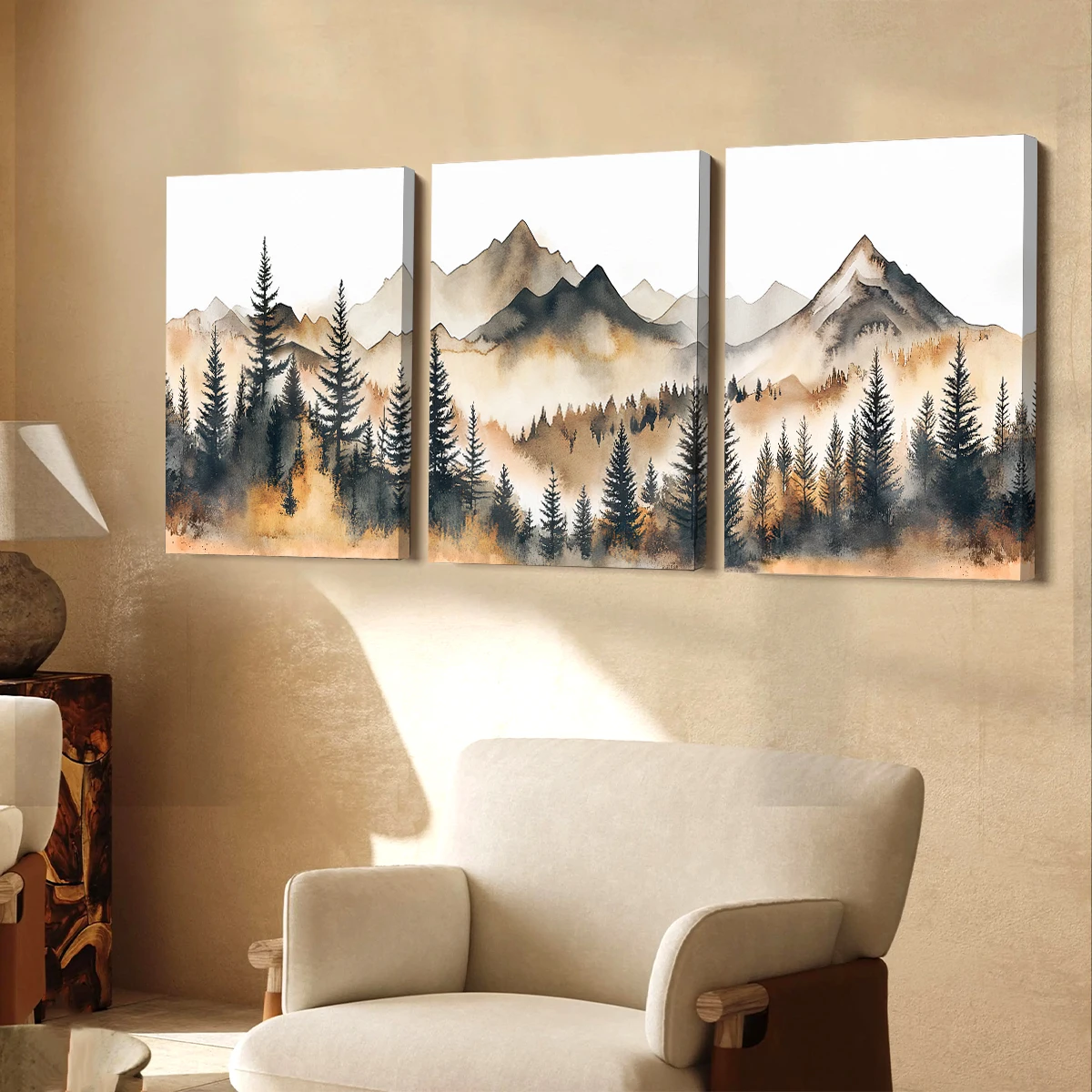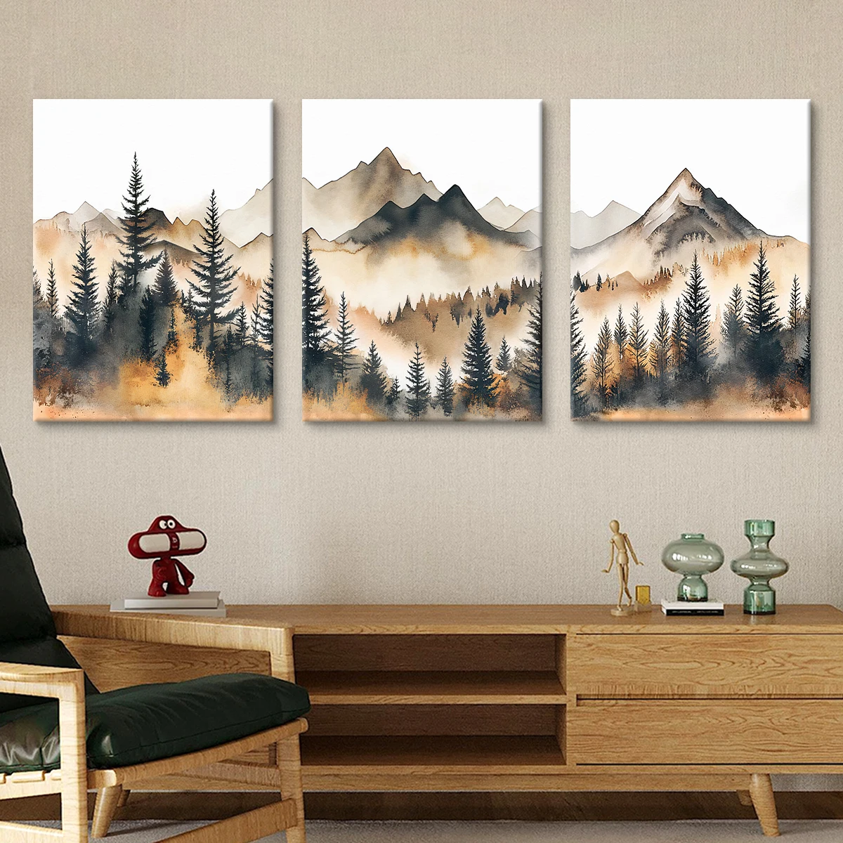 Romantic Trees and Mountains Landscape Poster Modern Landscape Wall Print Framed Canvas Painting Home Room Decor Perfect Gift