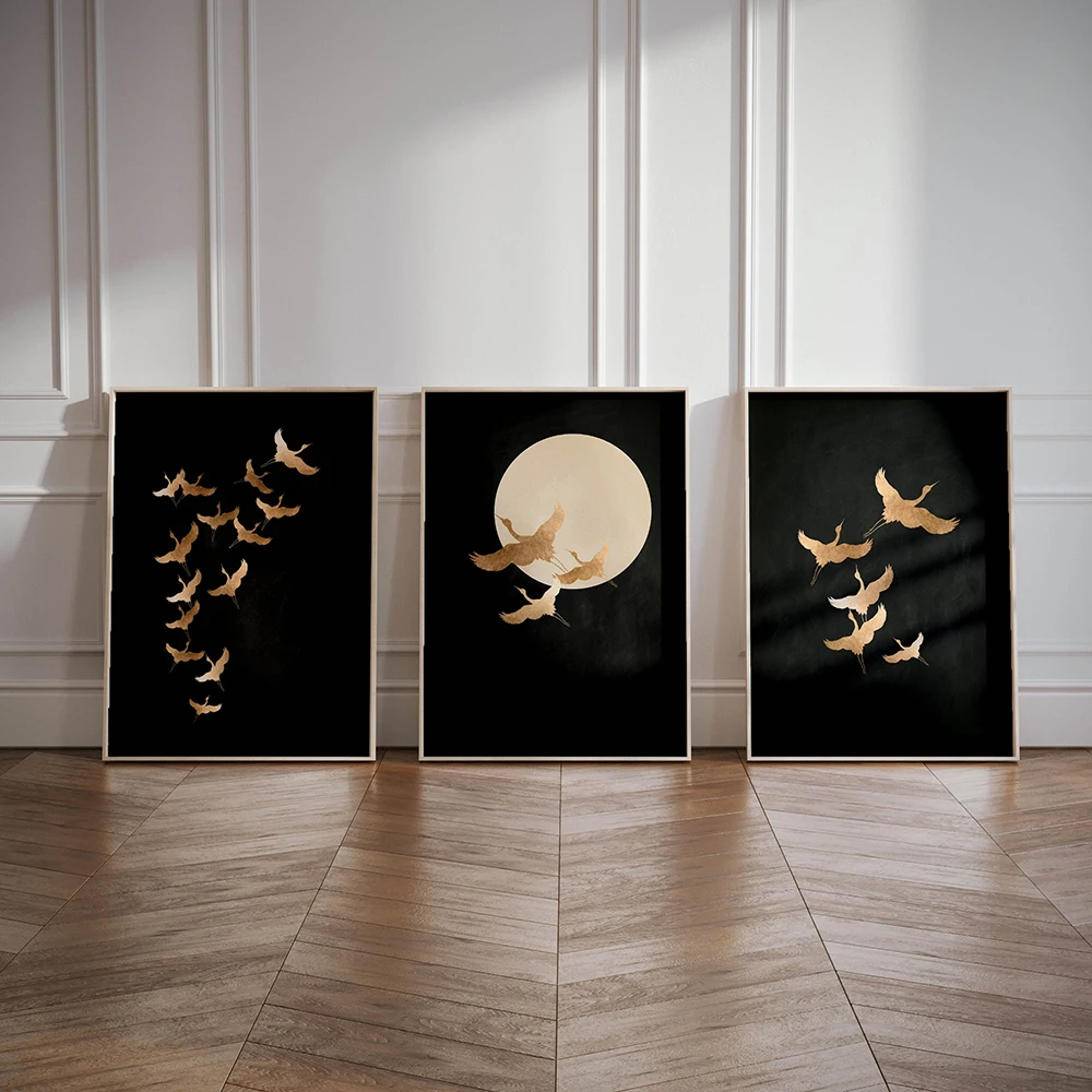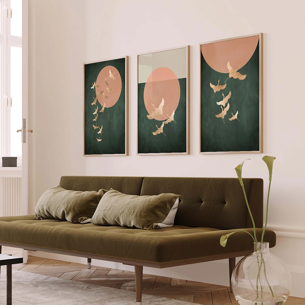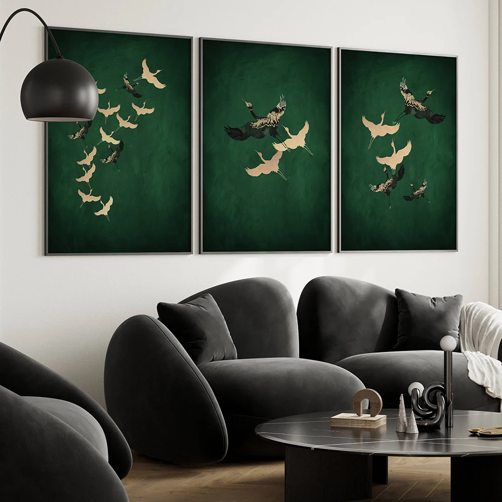 Sage Green Cranes Wall Art Prints Set of 3 Prints Japanese Wall Art Japandi Art Birds Minimalist Living Room Decor Gift Poster