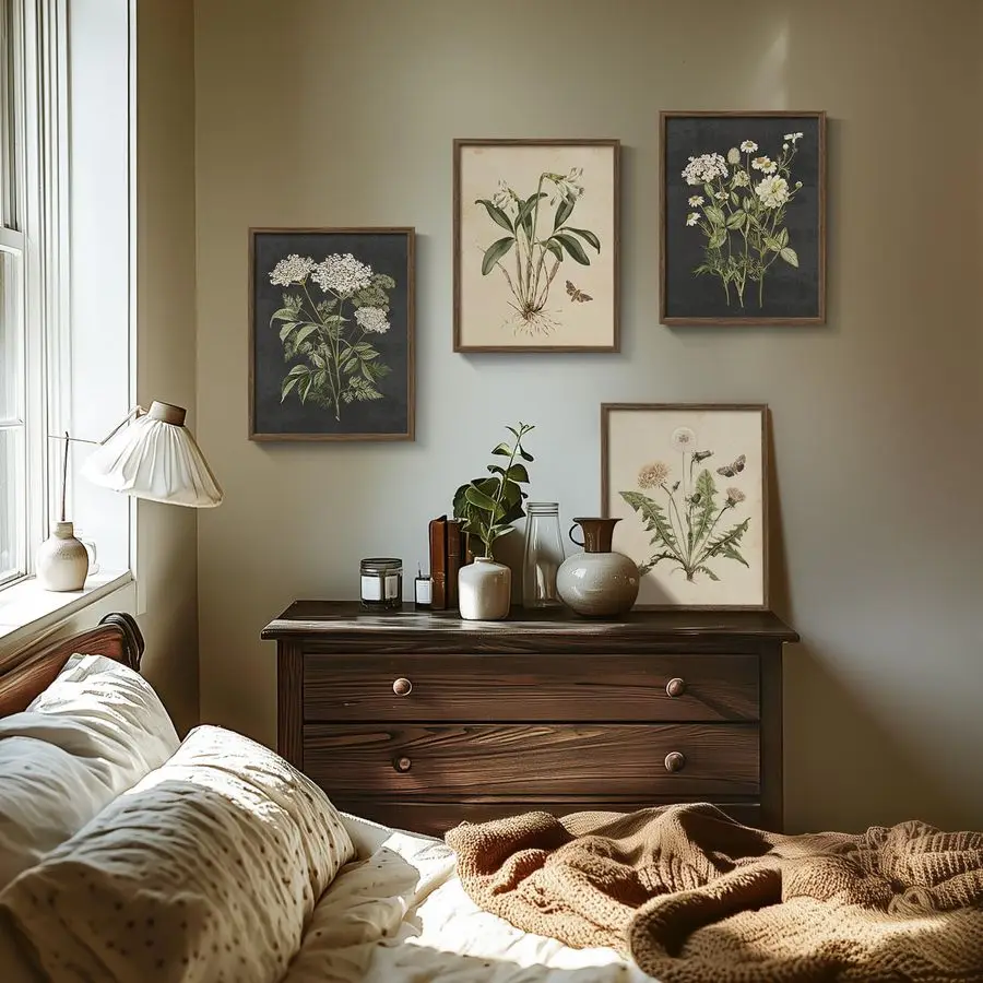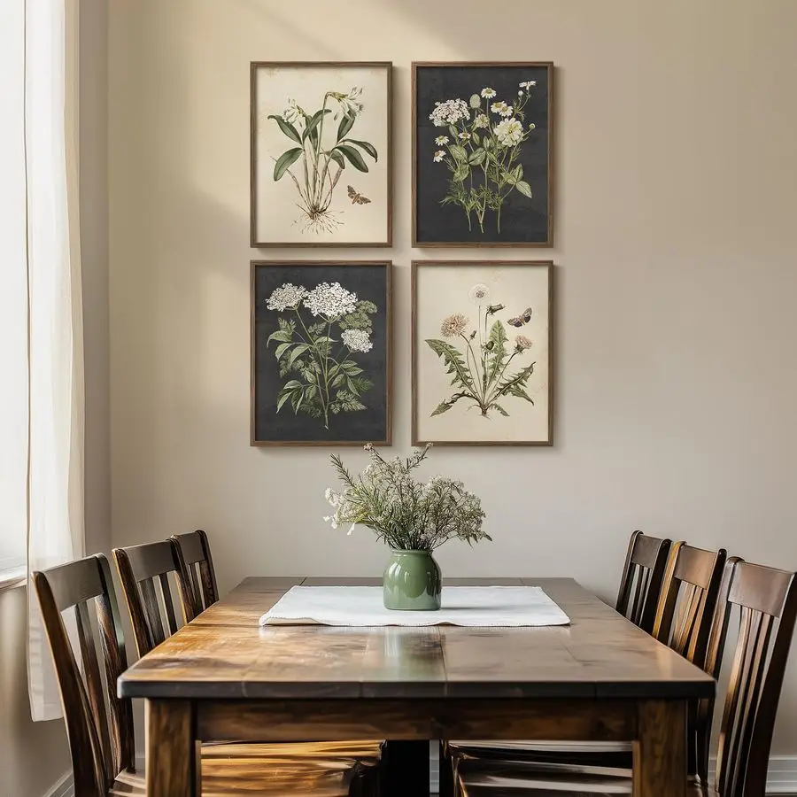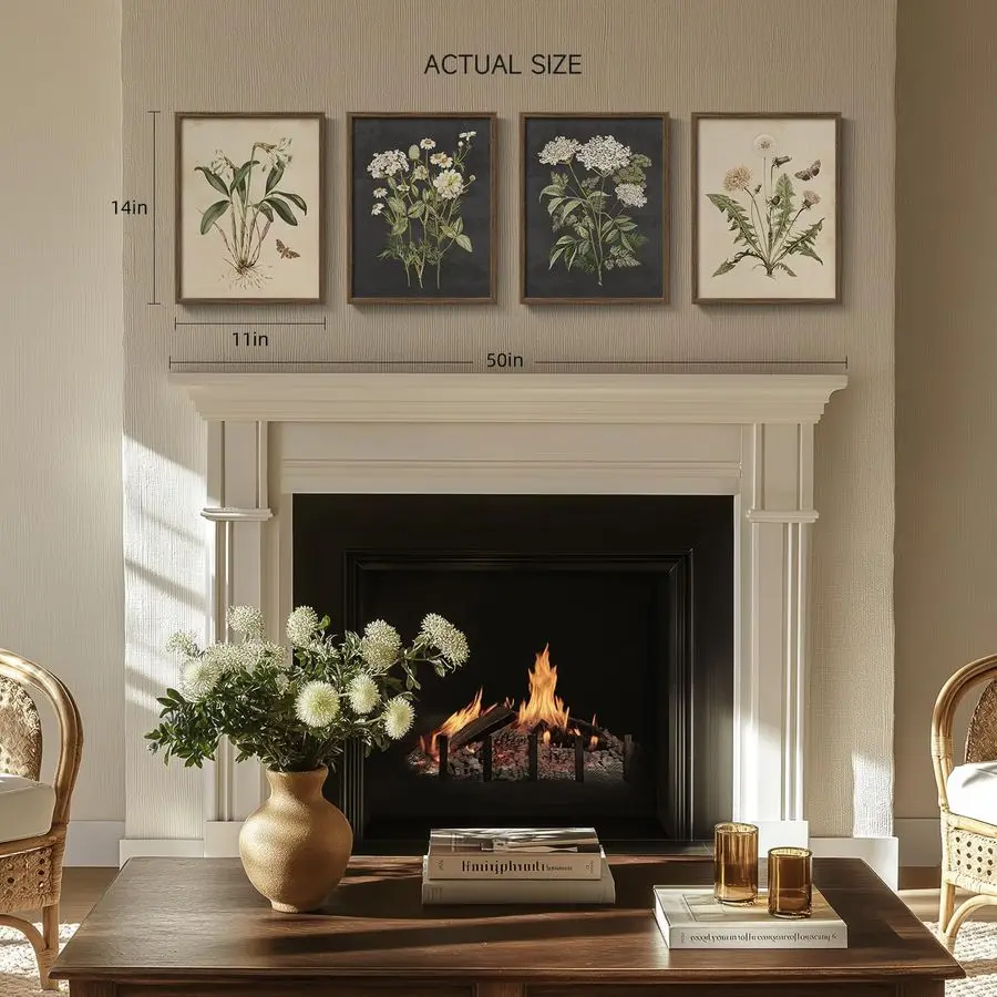 Vintage Botanical Wall Art Bedroom, 4 Piece Rustic Farmhouse Floral Canvas Prints Artwork, Neutral Flower Butterfly Pictures for