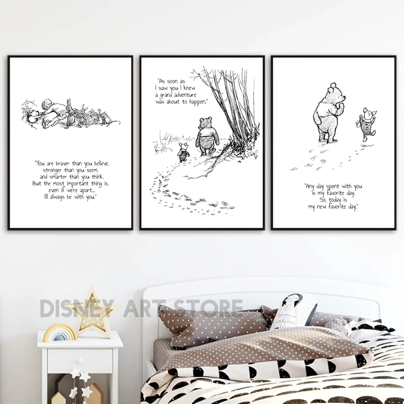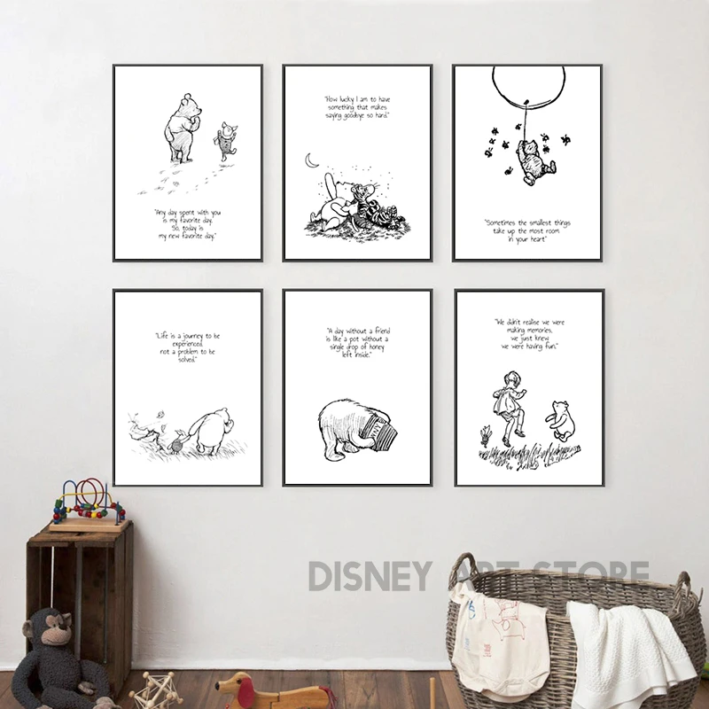 Winnie the Pooh Quote Prints Black and White Poster Nursery Decoration Baby Shower Pooh Art Canvas Painting New Baby Gifts